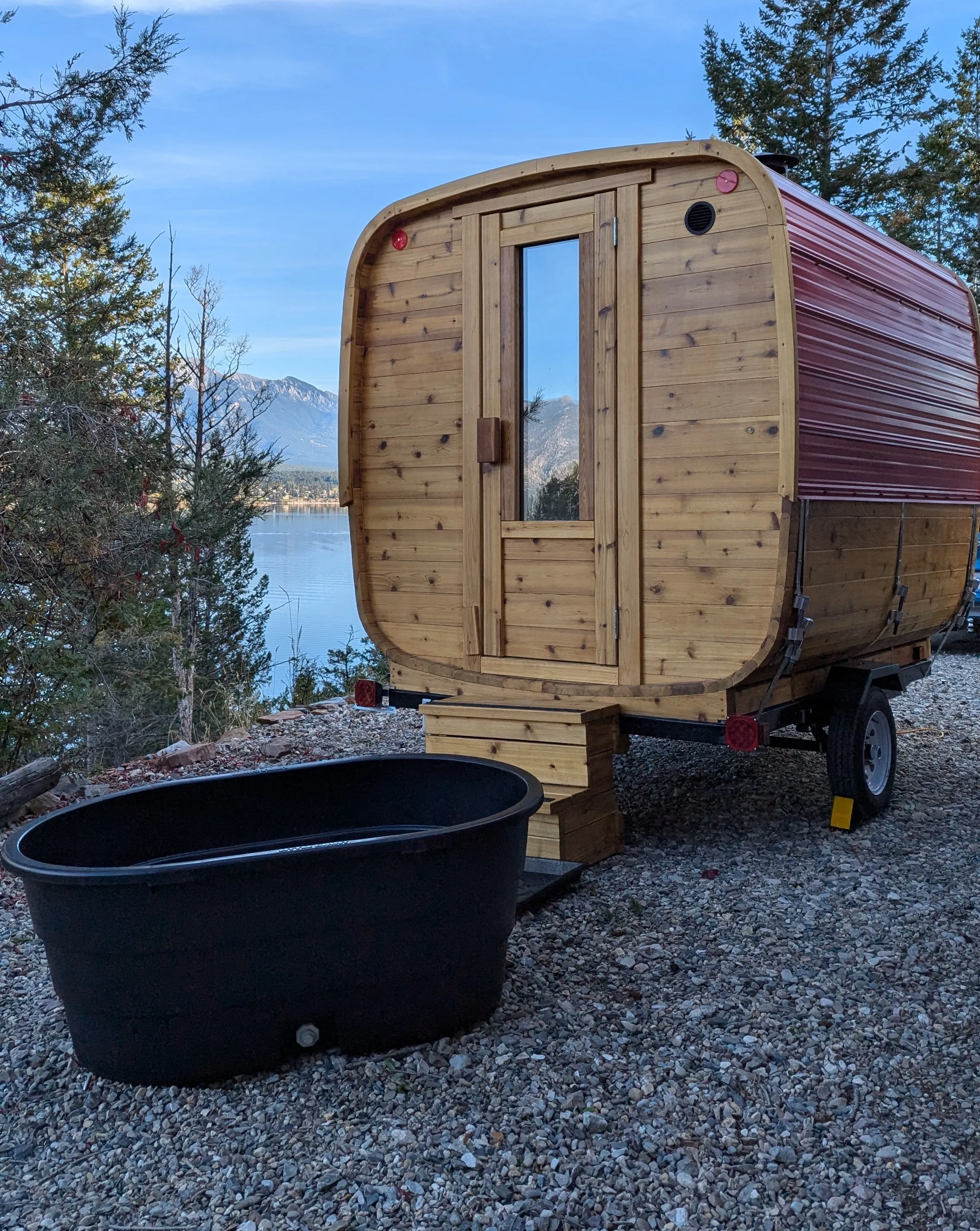 Create your own private contrast therapy experience with the mobile sauna (hot box) and cold plunge (ice box) combo.