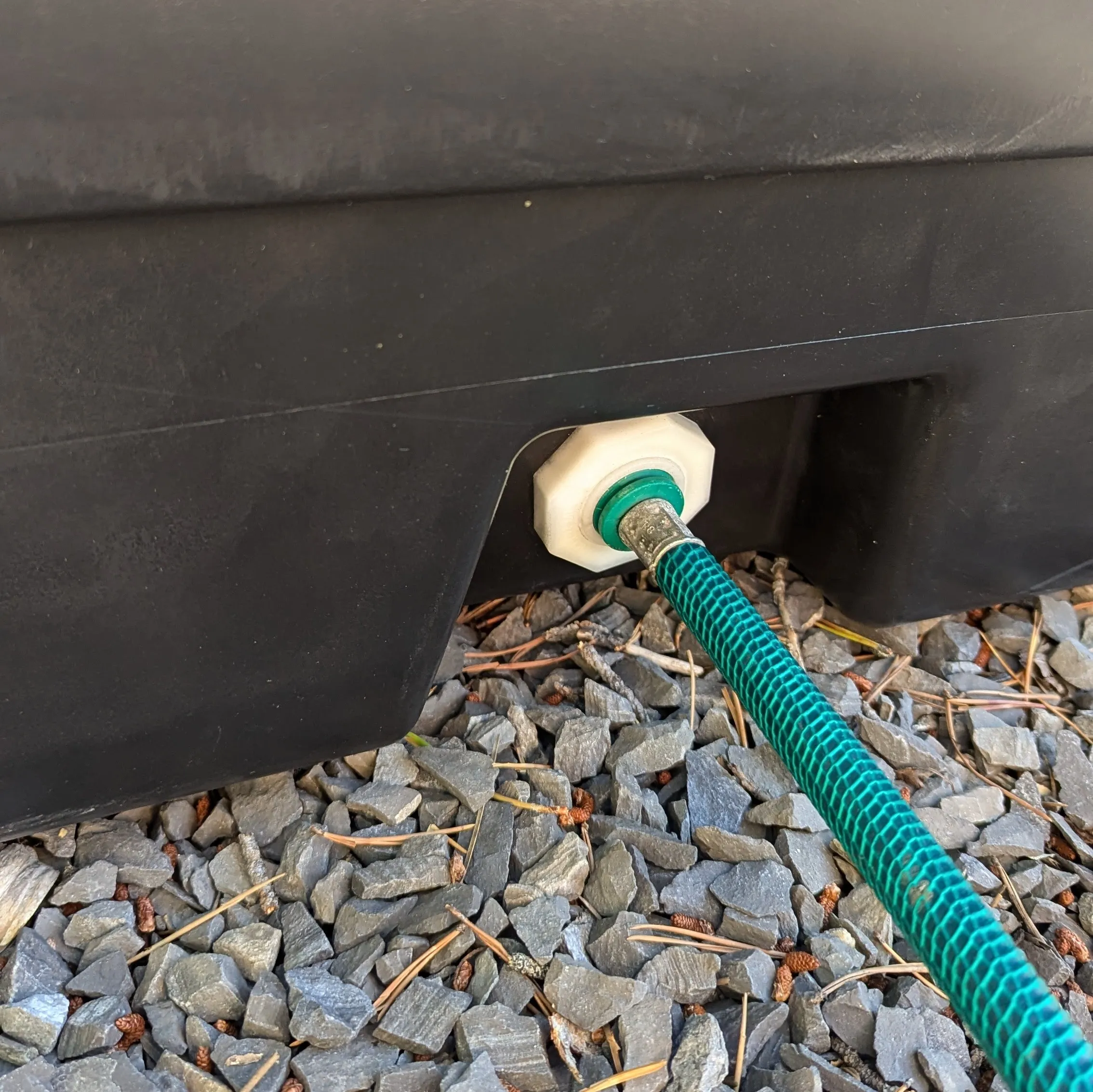 - Drain connects to standard garden hose
